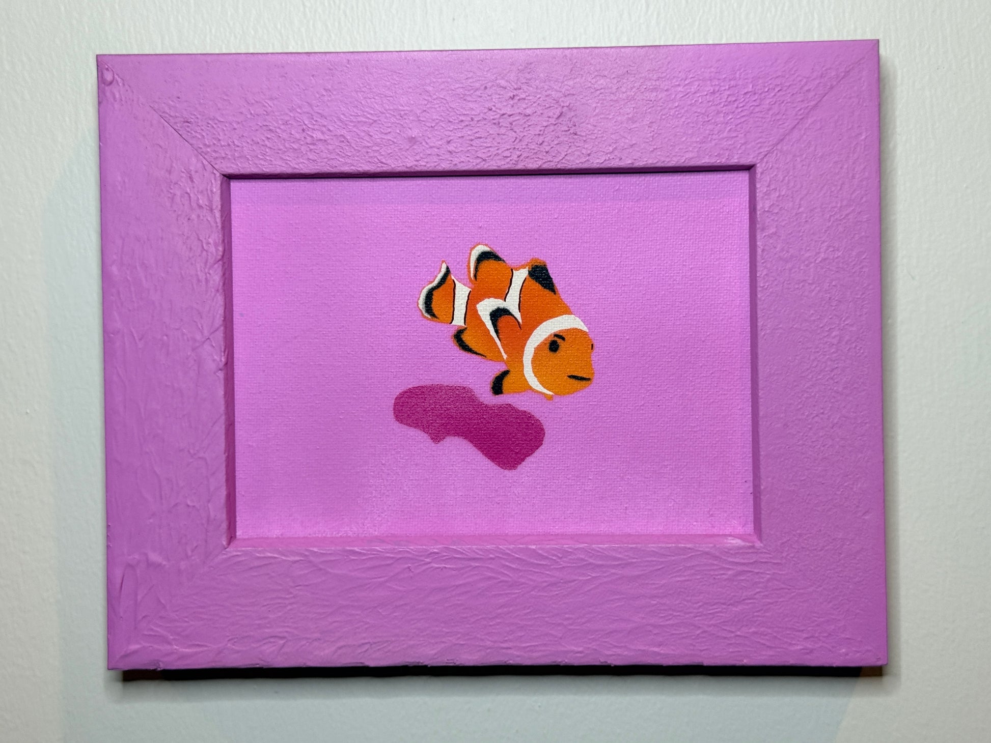 These fun little clownfish are sure to make a splash on any wall. These original pieces appear as if they are floating off the canvas.