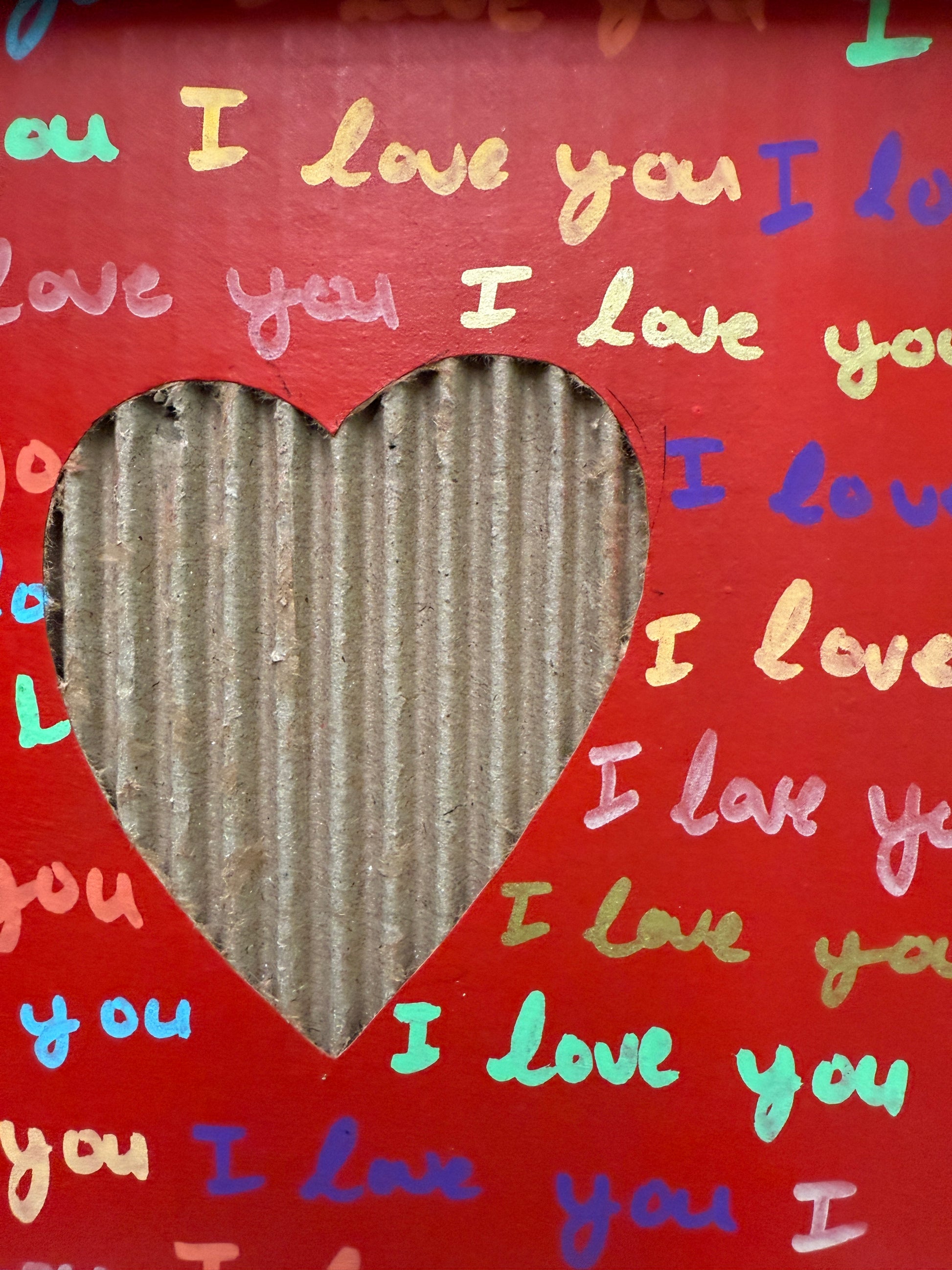 Eco Heart - because there’s never a bad time to say I love you to someone special. This hand finished piece on recycled cardboard is made with spray paint and acrylic paints.