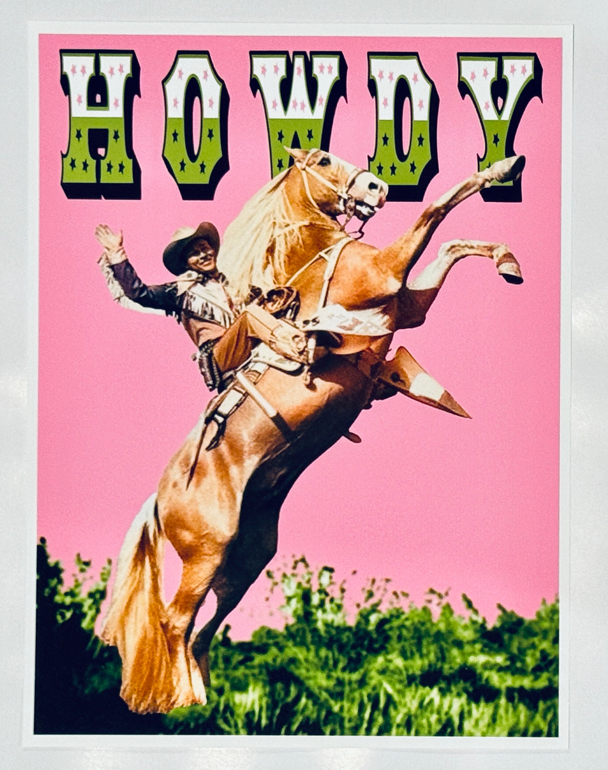 Howdy y'all! Get ready to add a pop of vibrant pink to your space with this 9 x 12 print on archival poster paper. This quirky and fun pop art print will surely turn heads and bring a playful energy to any room.